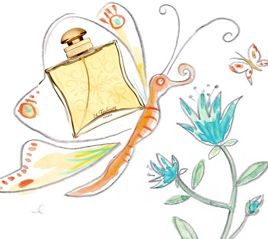 В названии аромата указан адрес главного бутика Hermes - 24 Faubourg, духи созданы в 1995 году. Классический цветочный аромат, композиция которого основана на соседстве богатых цветочных нот с сухим акордом пачулей.