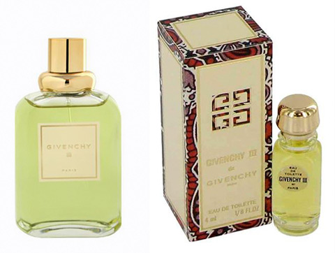 Givenchy III - аромат 1970 года, названный в честь одного из первых магазинов, расположенного по адресу: 3 avenue George V в Париже, открывается яркими красками бергамота и мандарина. Смесь ландыша, гиацинта, восточной розы и жасмина на основе лесного благоухания дубового моха, сандала, пачули и амбры делает аромат особенно привлекательным. Данный парфюм имел моментальный успех и стал необходимым аксессуаром, придающим шарм классическому стилю активной деловой женщины семидесятых.