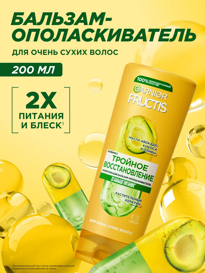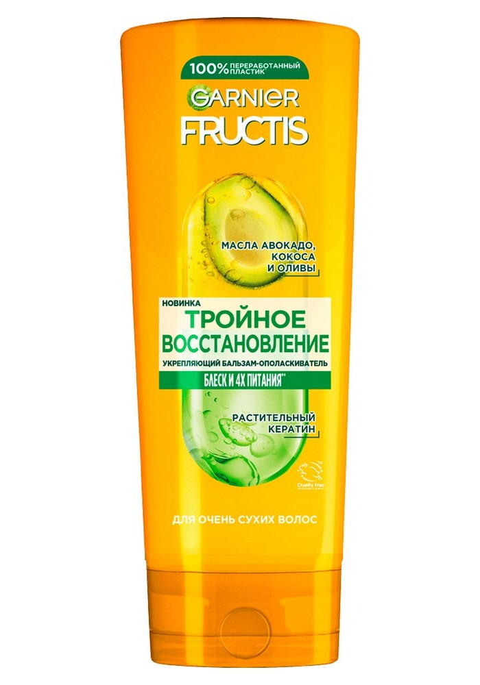 GARNIER FRUCTIS - ТРОЙНОЕ ВОССТАНОВЛЕНИЕ Укрепляющий бальзам-ополаскиватель "С маслами авокадо, кокоса и оливы" для очень сухих волос 200 мл.