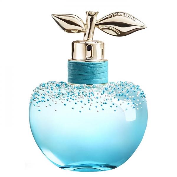 Парфюм одет в очаровательный голубой флакон в форме яблока, которое украшено в верхней части россыпью голубого бисера. А золотистый колпачок с листьями подчеркивает изысканность и элегантность заключенной внутри ароматической композиции.