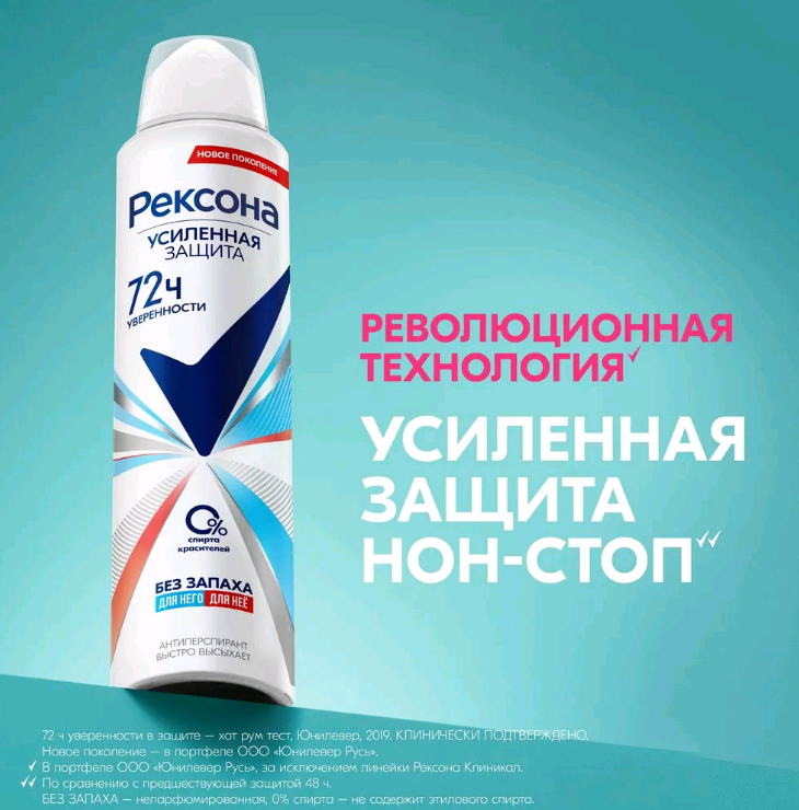 РЕКСОНА (150) УСИЛЕННАЯ ЗАЩИТА - ДЛЯ НЕГО. ДЛЯ НЕЕ (БЕЗ ЗАПАХА) Дезодорант-антиперспирант "72 ч уверенности" 150 мл.