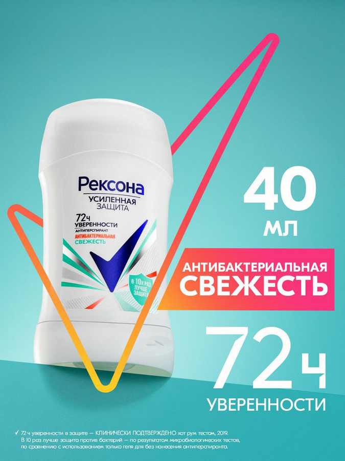 Попробуйте антиперспирант-карандаш Рексона "Антибактериальная свежесть" и ощутите длительную защиту от запаха и пота на 72 часа! Революционная технология микрочастиц активируется при движении, сохраняя свежесть и абсолютный комфорт на весь день. Микрочастицы создают дышащую микропленку для надежной защиты от пота и запаха. Больше движений – больше уверенности!