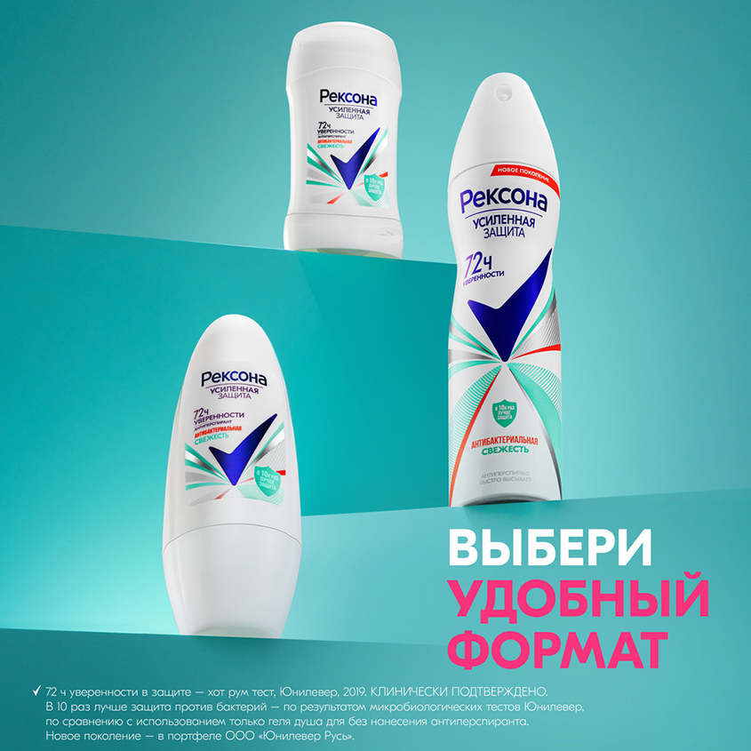 В линейке серии также представлены шариковый антиперспирант и антиперспирант-аэрозоль, чтобы вы могли выбрать идеальный для себя формат. Добавьте Рексона в свой ежедневный ритуал свежести. Быстро впитывается без ощущения липкости. Дерматологически протестировано. Не содержит этилового спирта.