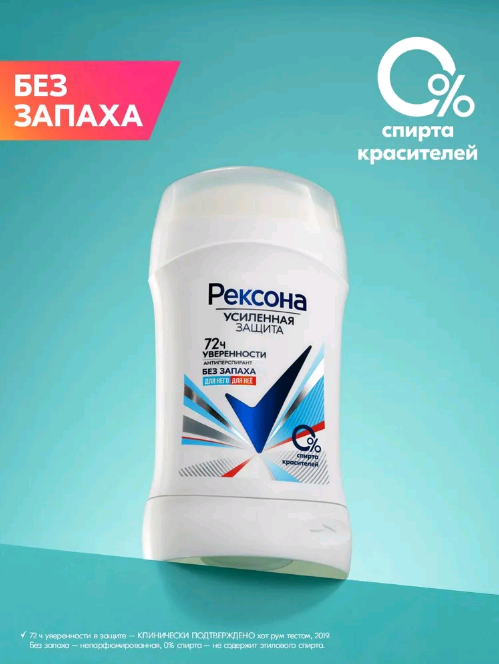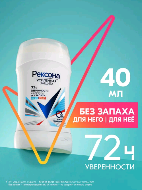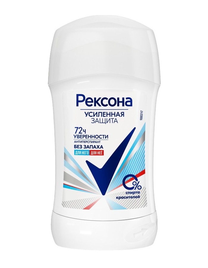 РЕКСОНА (40) УСИЛЕННАЯ ЗАЩИТА - ДЛЯ НЕГО. ДЛЯ НЕЕ (БЕЗ ЗАПАХА) Дезодорант-антиперспирант-стик "72 ч уверенности" 40 мл.