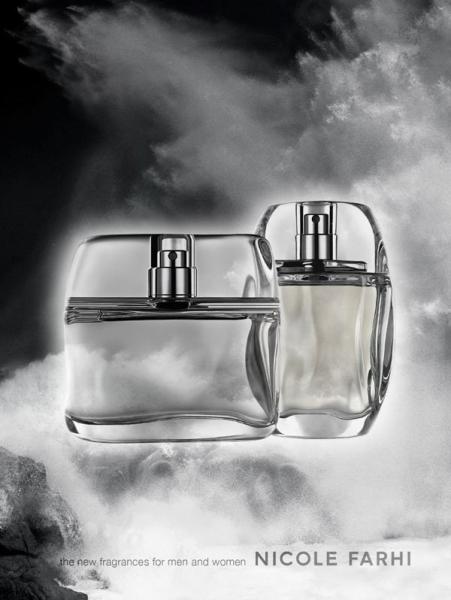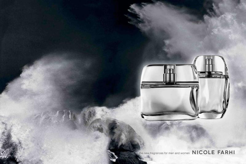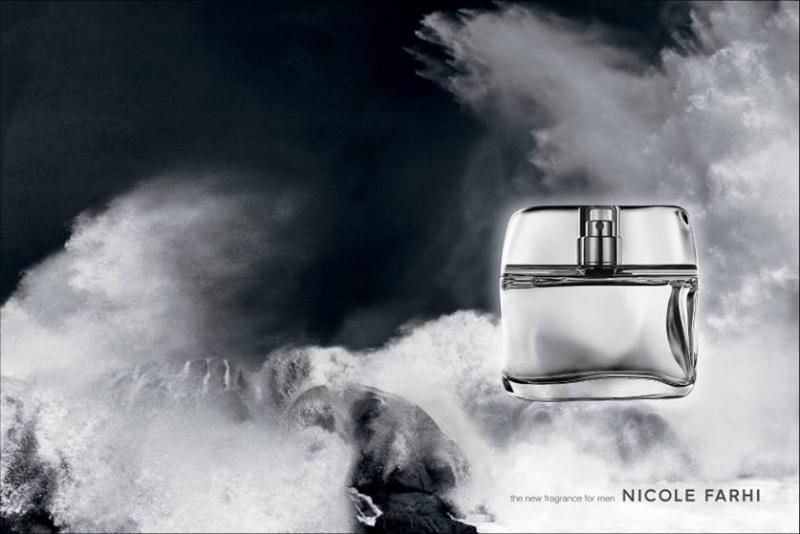 Cвежий древесный Nicole Farhi Homme облачен во флакон из тяжелого стекла, который был создан Николь в собственной студии. Рекламные образы продукта продолжают идею осенне-зимней коллекции одежды Николь: черно-белые, с изображением бушующего моря, олицетворяющие близость к природе и естественность.