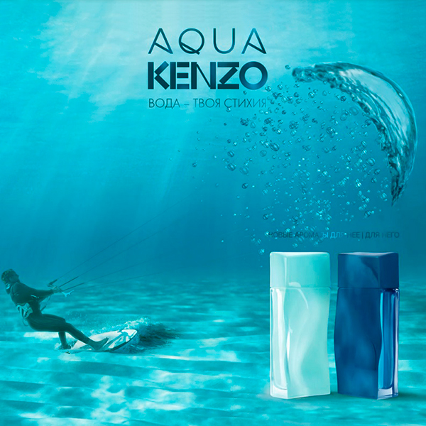 Для настоящих поклонников водной стихии и приверженцев акватических ароматов Дом Kenzo выпускает освежающий дуэт ароматов Aqua Kenzo, который предлагает новую интерпретацию темы воды и ее свежести. Aqua Kenzo Pour Homme — это дерзкий вызов «большой волне» или смелый прыжок в воду, жажда покорения водных просторов и решимость нового погружения в морские глубины, непреодолимый «призыв» еще глубже почувствовать удивительную силу воды. Aqua Kenzo Pour Homme — вода, как «противоядие» от скуки!