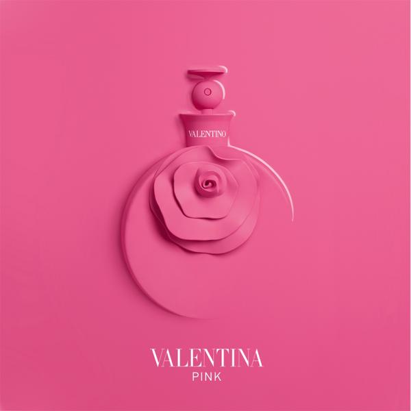 Valentina Pink от итальянского бренда Valentino появился в марте 2015 года. Женскую фруктовую цветочную композицию разработали парфюмеры из Франции Дафна Бюже и Фабрис Пеллегрин. Парфюмерная формулам вышла под знаком клубничного мороженого, а потому даже ярко розовый флакон отражает сладкую и сочную фруктовую сущность. Аромат пронизан настроением, когда лето не за горами и уже вовсю можно лакомиться душистой клубникой.