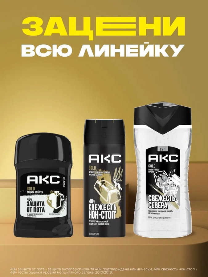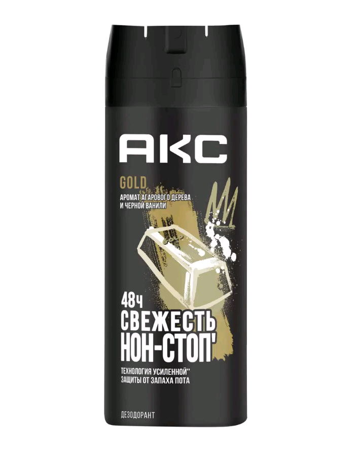 Дезодорант Акс Gold в формате спрея удивит тебя нотами агарового дерева и черной ванили. Нанеси его на чистую, сухую кожу и забудь о неприятном запахе на 48 часов.
