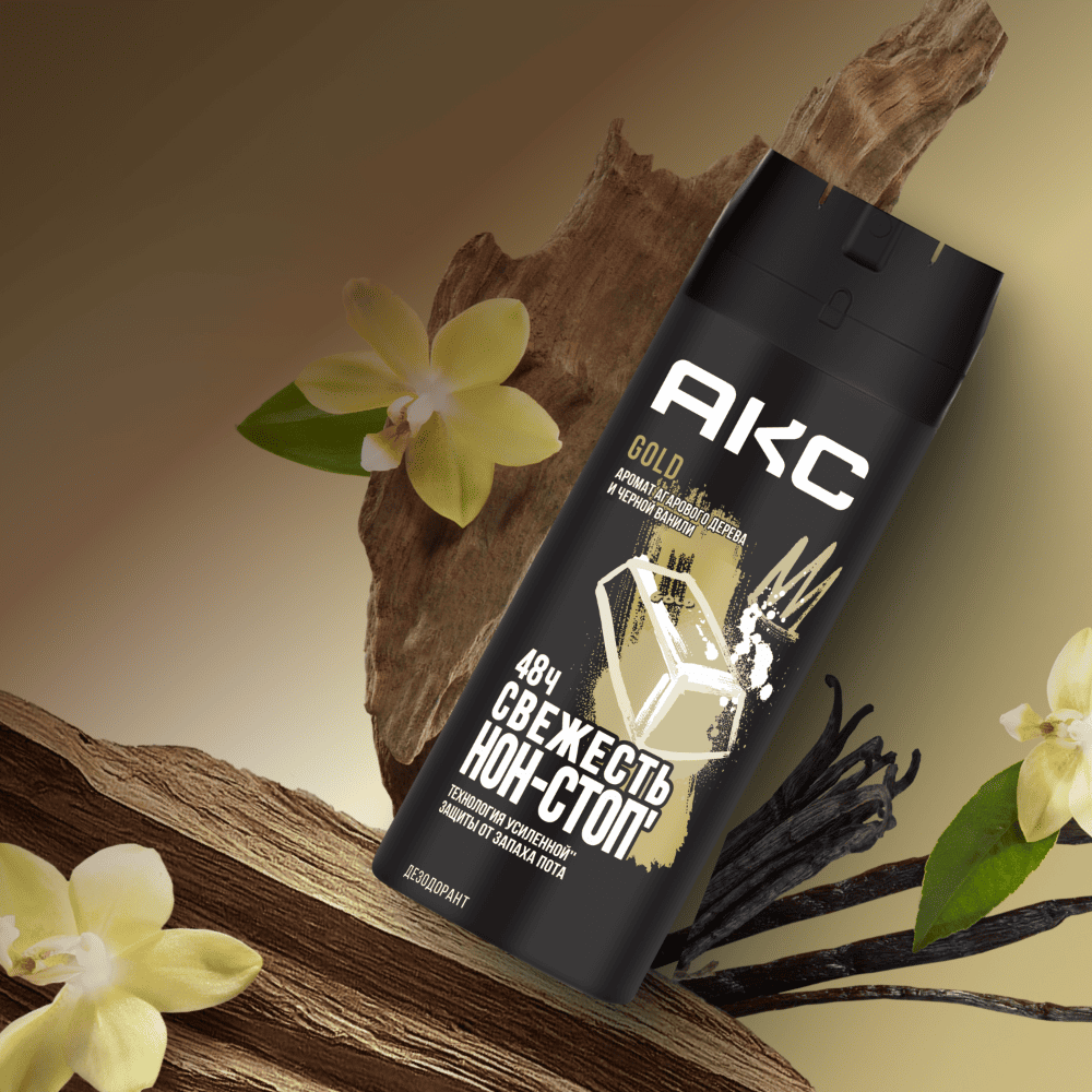 Акс Gold раскрывает самую мягкую сторону твоего характера. Загадочная черная ваниль дополняется строгими нотами агарового дерева.