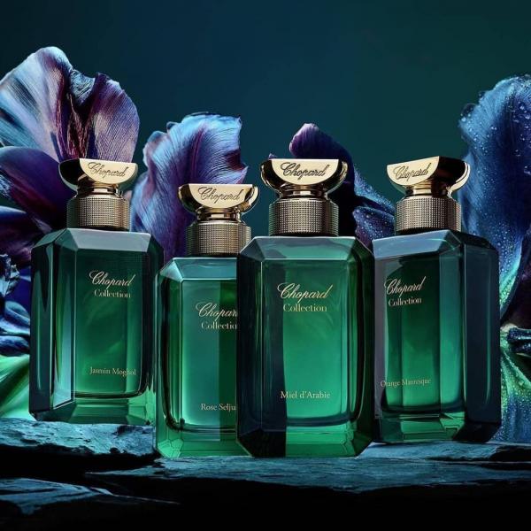 Уже знакомый темно-зеленый стеклянный флакончик, в который облачен аромат Chopard Rose Seljuke выпуска 2018 года, недвусмысленно говорит о принадлежности духов к линейке Gardens of Paradise.