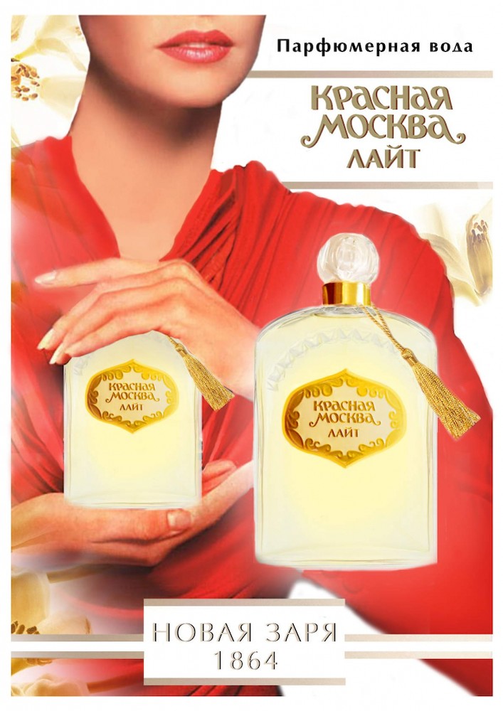 Новая Заря дарит нашим современницам новую версию легендарного аромата "Красная Москва", передавая новому поколению женщин аромат "Красная Москва Light". Аромат ничуть не уступает в красоте своему легендарному предшественнику, отличаясь легкостью и ярким цветочным фоном. Каждая нота духов подчеркивает женственность и элегантность современной женщины, раскрывая ее первозданную красоту.