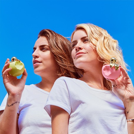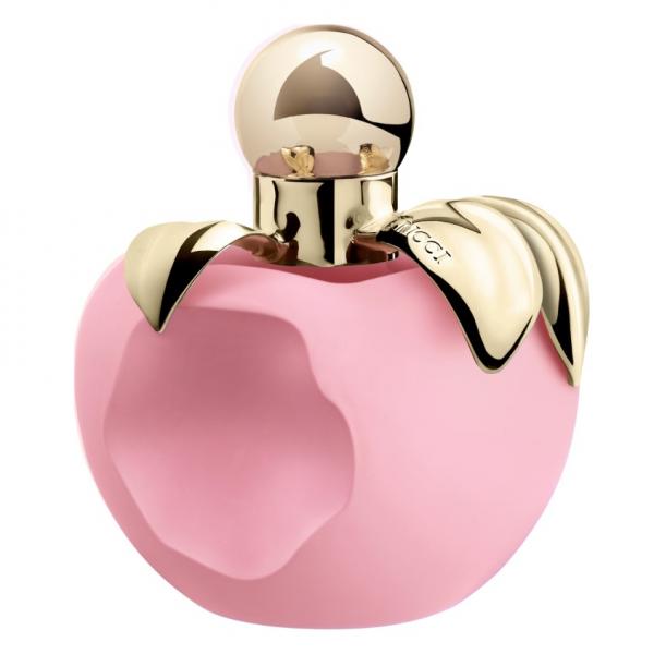 Оригинальный флакон в форме надкушенного розового яблока с золотистыми листьями завершает образ освежающего ольфакторного десерта.