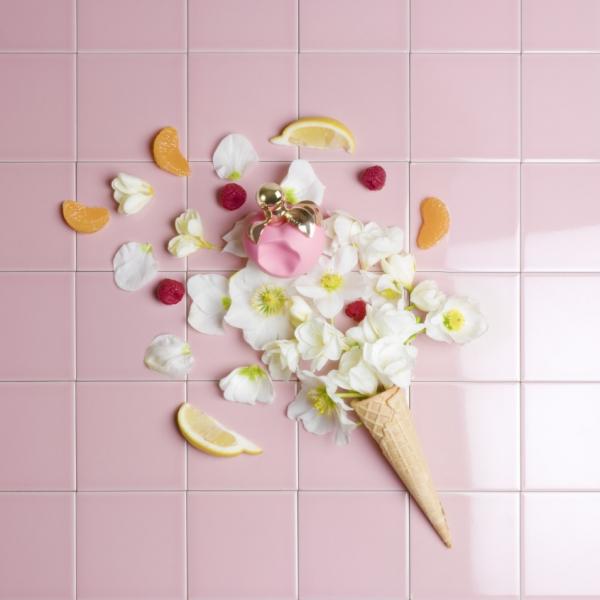 Композиция воплощает в себе не просто аппетитный запах карамели, но и роскошный цветочный букет со свежими оттенками и фруктовыми аккордами. Мандарин Уншиу насыщает аромат сладостью и соком, а нотка лимона освежает и бодрит. Спелая малина придает парфюму особый ягодный оттенок, который можно услышать только в самом сладком фруктовом десерте. Утонченная гардения делает композицию более естественной и женственной, а жасмин дополняет ее нежностью. Чтобы почувствовать легкий карамельный запах, парфюмер добавил аккорд пралине.