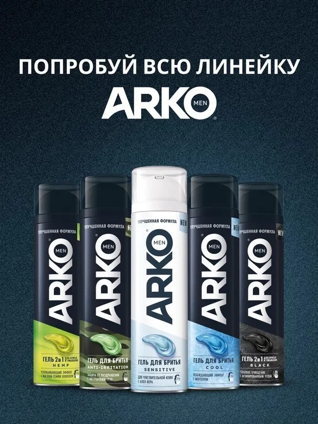 ARKO MEN ANTI-IRRITATION Гель для бритья "Защита от раздражения" с экстрактами трав 200 мл.