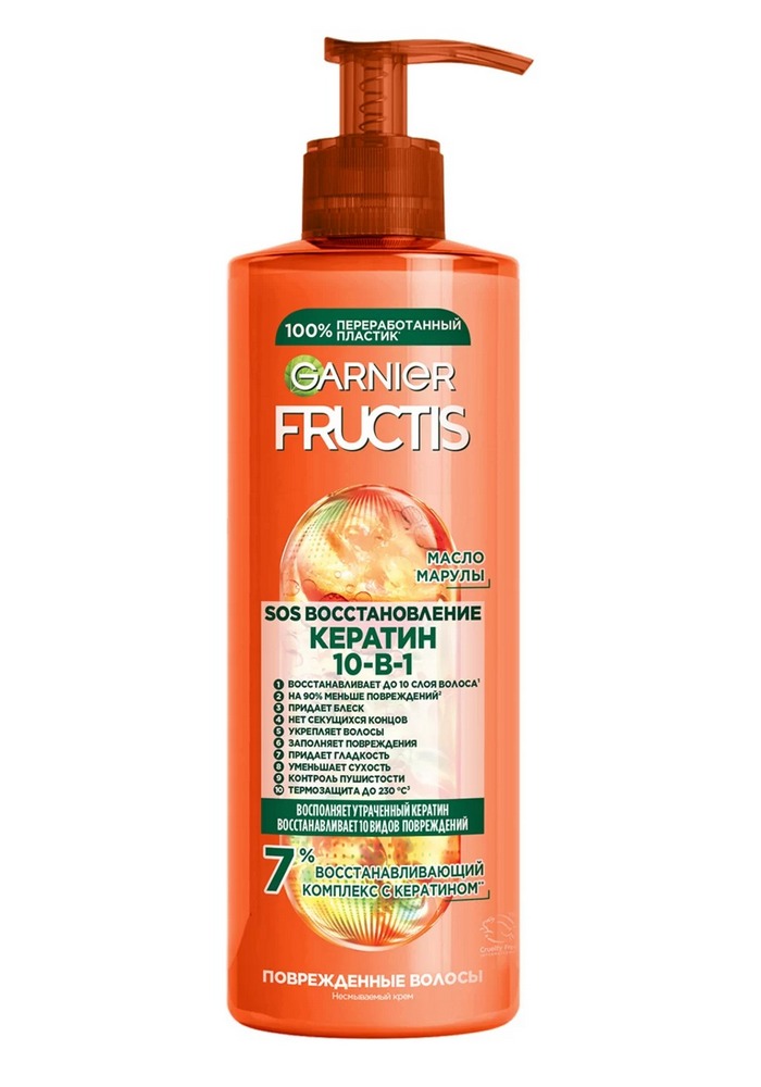 GARNIER FRUCTIS - SOS ВОССТАНОВЛЕНИЕ Несмываемый крем ""Кератин 10-в-1" с маслом марулы для поврежденных волос 400 мл.