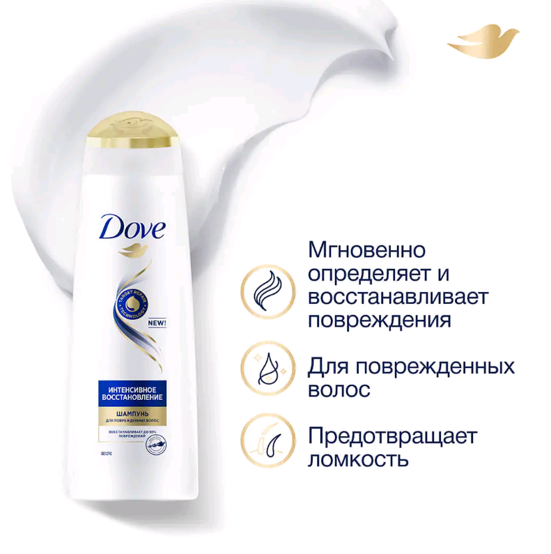 Волосы постоянно подвержены внешним негативным воздействиям: перепады температур, термическое воздействие, что приводит к повреждению их структуры. Специальные средства для ухода за поврежденными волосами Dove Hair Therapy Интенсивное Восстановление делает их более сильными и защищает от ломкости на длительное время. Шампунь с технологией Target Repair работает сразу в 3-х направлениях.