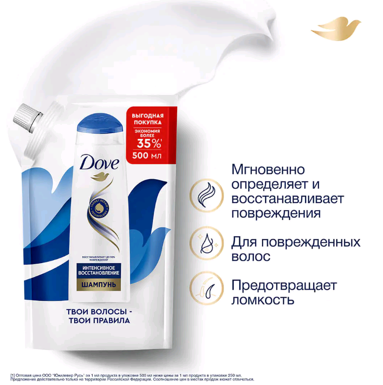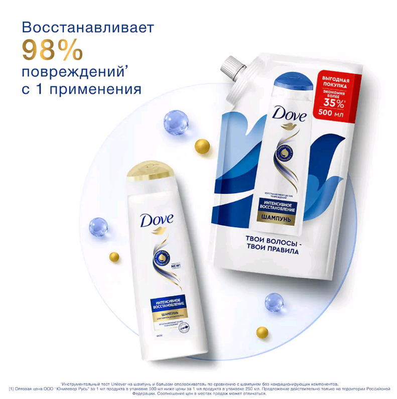 DOVE HAIR THERAPY - ИНТЕНСИВНОЕ ВОССТАНОВЛЕНИЕ Шампунь для поврежденных волос 250 мл.