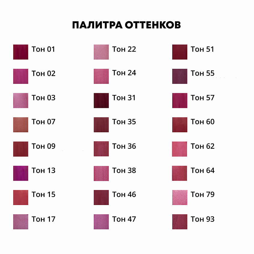 Входящие в состав натуральные масла и экстракты ухаживают за вашими губами. Макияж и уход одновременно – что может быть лучше в современном динамичном мире! Касторовое масло смягчает и питает кожу. Экстракт рыжика посевного и пчелиный воск омолаживают, улучшают кровоснабжение клеток, снимают раздражение и успокаивают нежную кожу губ