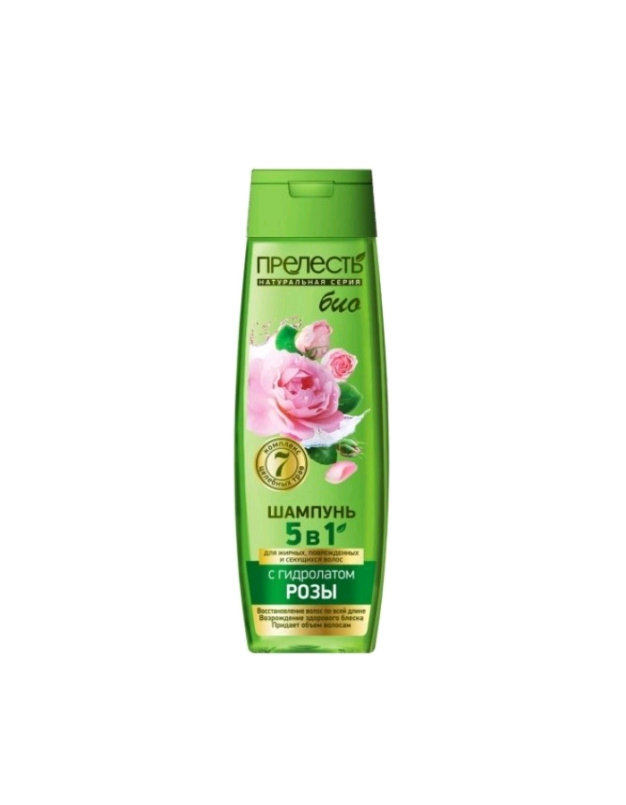 ПРЕЛЕСТЬ БИО 5 В 1 Шампунь для жирных, поврежденных и секущихся волос "С гидролатом розы" 400 мл.