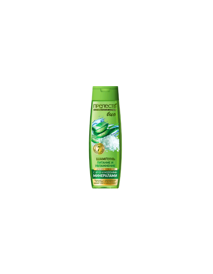 ПРЕЛЕСТЬ БИО ПИТАНИЕ И УВЛАЖНЕНИЕ Шампунь для всех типов волос "С экстрактом алоэ и морскими минералами" 400 мл.