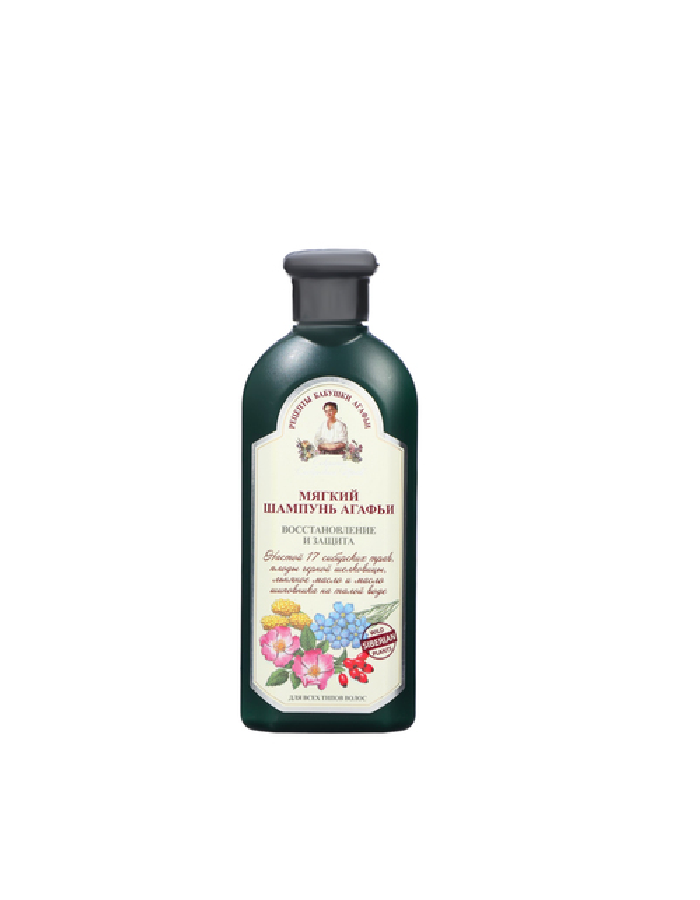 РЕЦЕПТЫ БАБУШКИ АГАФЬИ ВОССТАНОВЛЕНИЕ И ЗАЩИТА Мягкий шампунь Агафьи для всех типов волос 350 мл.