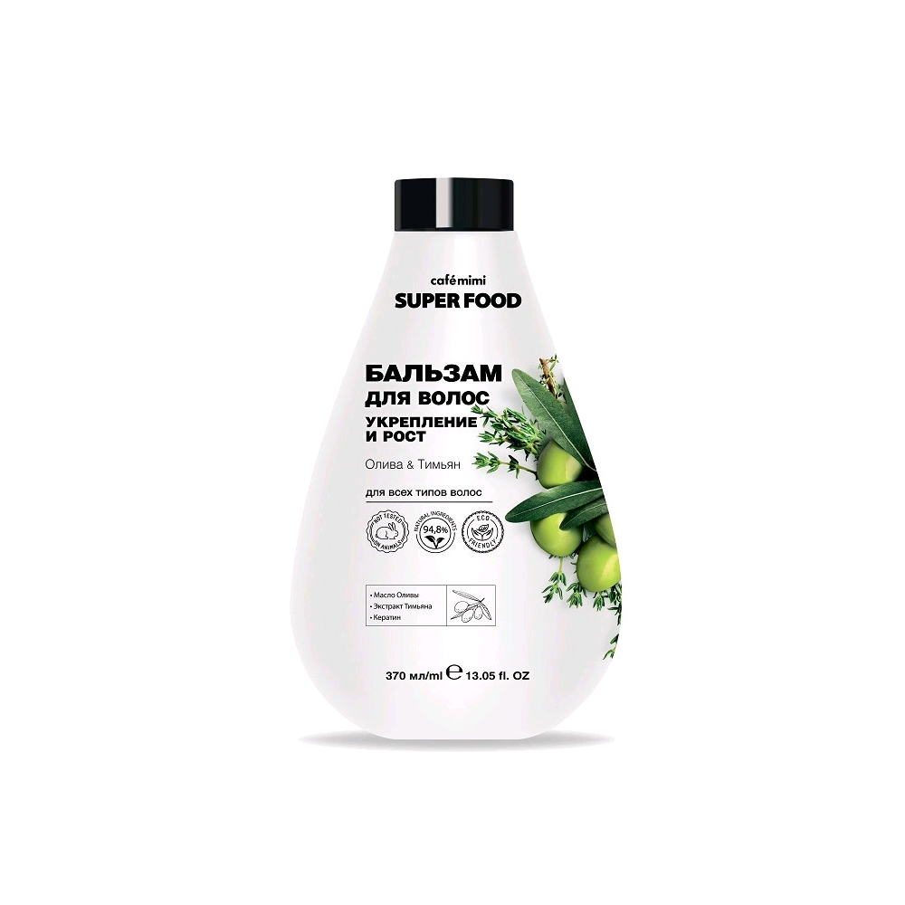 CAFE MIMI SUPER FOOD - УКРЕПЛЕНИЕ И РОСТ Бальзам для волос "Олива & Тимьян" для всех типов волос 370 мл. (571202)