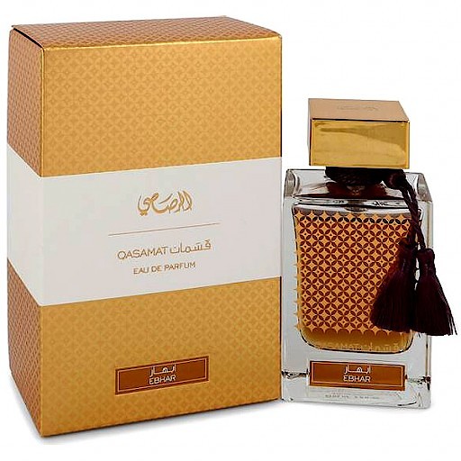 Дубайский парфюмер Rasasi - творческая сила, стоящая за Rasasi Qasamat Ebhar, частью серии из четырех ароматов унисекс, вдохновленных ближневосточными парфюмерными традициями. Композиция включает фруктовые верхние ноты бодрящего зеленого яблока и лимона и цветочные сердечные ноты дамасской розы. жасмин, цветок лотоса и малиновый ирис. Его интенсивные вызывающие воспоминания базовые ноты мускуса, пралине, бобов тонка и ванили придают аромату глубокий романтический характер, что делает его особенно подходящим для вечерних нарядов и особых случаев.