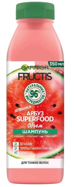 GARNIER FRUCTIS - АРБУЗ SUPERFOOD Шампунь "Объем" для тонких волос 350 мл.
