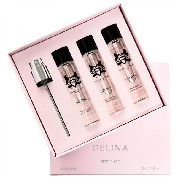 Женский аромат Delina был создан в 2017 году стараниями парфюмера Квентина Бишом. Он предназначен, в первую очередь, элегантным дамам, которые обладают изысканным вкусом и стилем. Флакон парфюма пудрово-розового цвета с шарфом, подобранным в тон, состоящим из атласных нитей. Лишь только раз взглянув на это произведение искусства, рука невольно тянется к нему и хочется поскорее узнать, что там внутри. А внутри цветы, такие ароматные и настоящие, что кажется, будто они повсюду. С первого момента нанесения, аромат раскроется тонкими запахами бергамота, ревеня, личи и мускатного ореха. Ноты сердца усиливают приятный аромат, благодаря запаху розу, признанного символа любви. Где-то отдалённо слышится тонкий аромат ландышей, и всё это великолепие сплетается в единую композицию с мускусом, пряной ванилью и кашмераном. Состав парфюма играет нотами: кашмерана, ванили, личи, пиона, ландыша, турецкой розы, мускатного ореха, бергамота, ревеня и белого мускуса. Местами его оттеняют древесные нотки. Аромат Delina согревает своим теплом и чувственностью. Он обязательно придётся по вкусу аристократке с большой буквы, которая превыше всего ценит поистине роскошные вещи. Флакончик этого цветочного букета, приобретённый в интернет-магазине, будет хорошим подарком для себя. Мужчины, подарите своей любимой женщине Marly Delina и она будет в восторге!