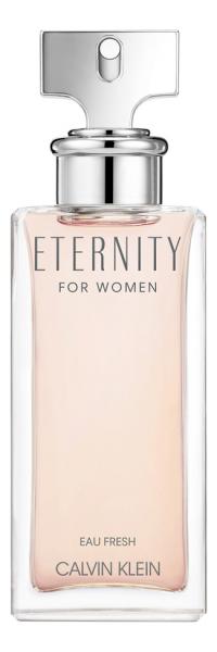 Calvin Klein Eternity Eau Fresh — парфюмерная вода с цветочно-водяным ароматом, представленная в 2020 году знаменитым модным брендом Calvin Klein. Романтичный и свежий легкий аромат Eternity Eau Fresh освежает и пленяет идеальным балансом парфюмерных ингредиентов, вдохновляет и поощряет в поисках высокой настоящей любви. Аромат открывается свежими искристыми цитрусовыми акцентами бергамота, фруктовыми аккордами сочной спелой груши и сладких терпковато-вяжущих ягод душистой черной смородины. «Сердце» парфюмерной композиции Calvin Klein Eternity Eau Fresh чарует роскошным цветочным трио пьянящей бархатисто-пряной розы, медового пиона и изысканного белого жасмина, которое сплетаются в шлейфе аромата с восточными согревающими нотами магического пряного пачули, чувственными мускусными оттенками и тонким освежающим запахом амбры.