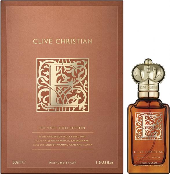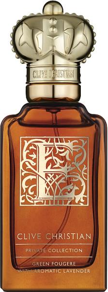 Аристократичный парфюм Clive Christian E: Green Fougere предназначен для ношения в паре с мужским ароматом E: Gourmande Oriental и заключен в фирменный брендовый флакон, украшенный витиеватым рисунком и одной из букв, составляющих имя парфюмера.