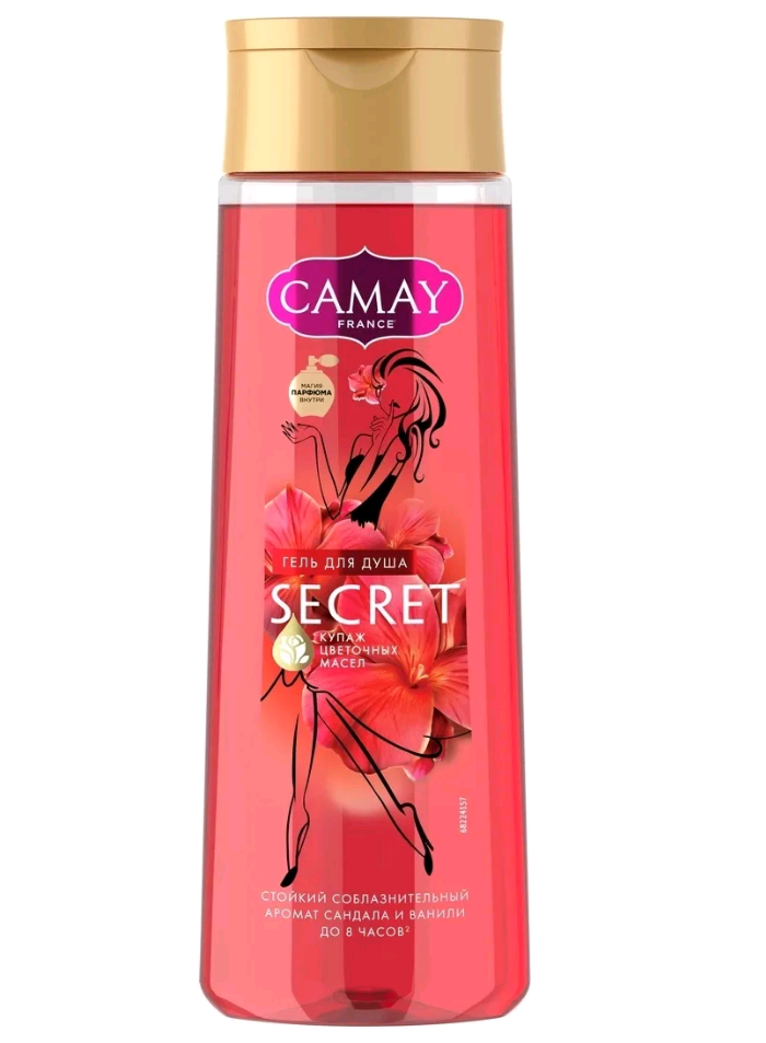 CAMAY SECRET Парфюмированный гель для душа "Стойкий соблазнительный аромат Сандала и Ванили до 8 часов" 250 мл.