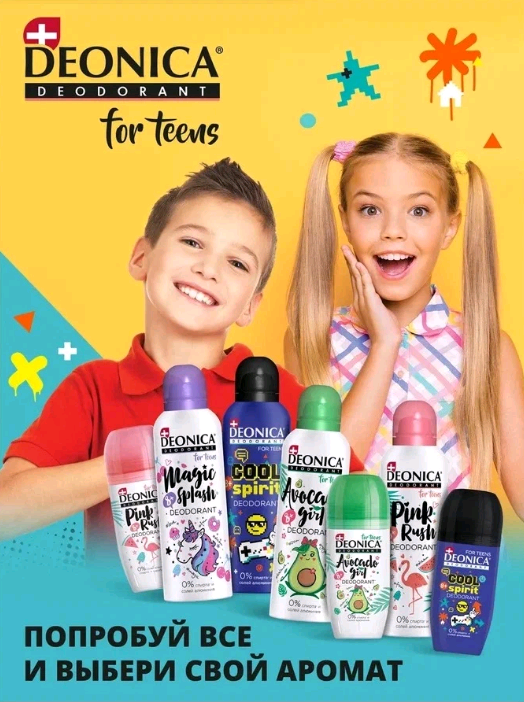 Специальная формула Deonica for teens с бисабололом и экстрактом бамбука разработана специально для нежной кожи подмышек, обеспечивает защиту и комфорт на 24 ч, позволяя коже дышать.Одобрено дерматологами. Подходит для детей с 8 лет.
