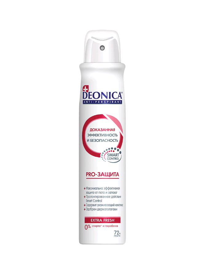 Уникальный антиперспирант DEONICA PRO-ЗАЩИТА содержит комплекс антибактериальных, противомикробных и противовоспалительных компонентов и обеспечивает максимальную защиту от пота и запаха в течение 72 часов.