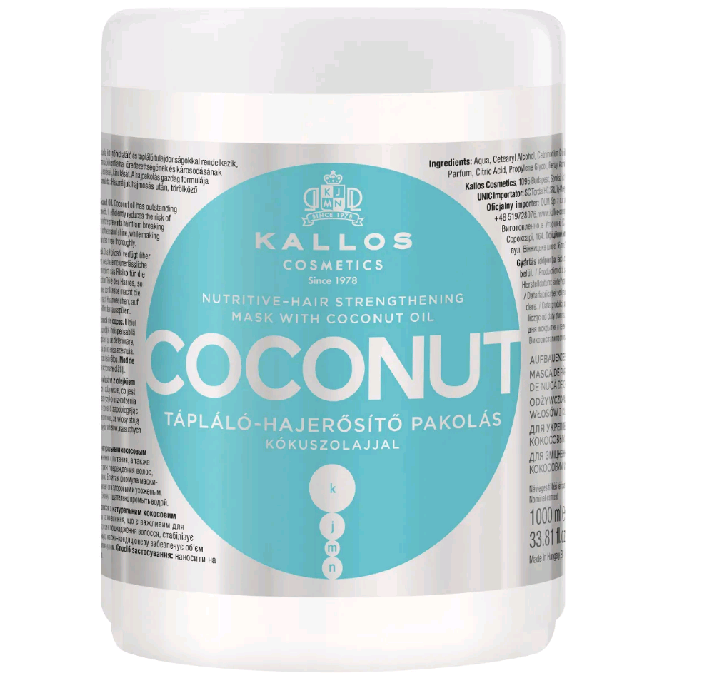 KALLOS COCONUT Маска для укрепления слабых и поврежденных волос "С натуральным кокосовым маслом" 1000 мл.