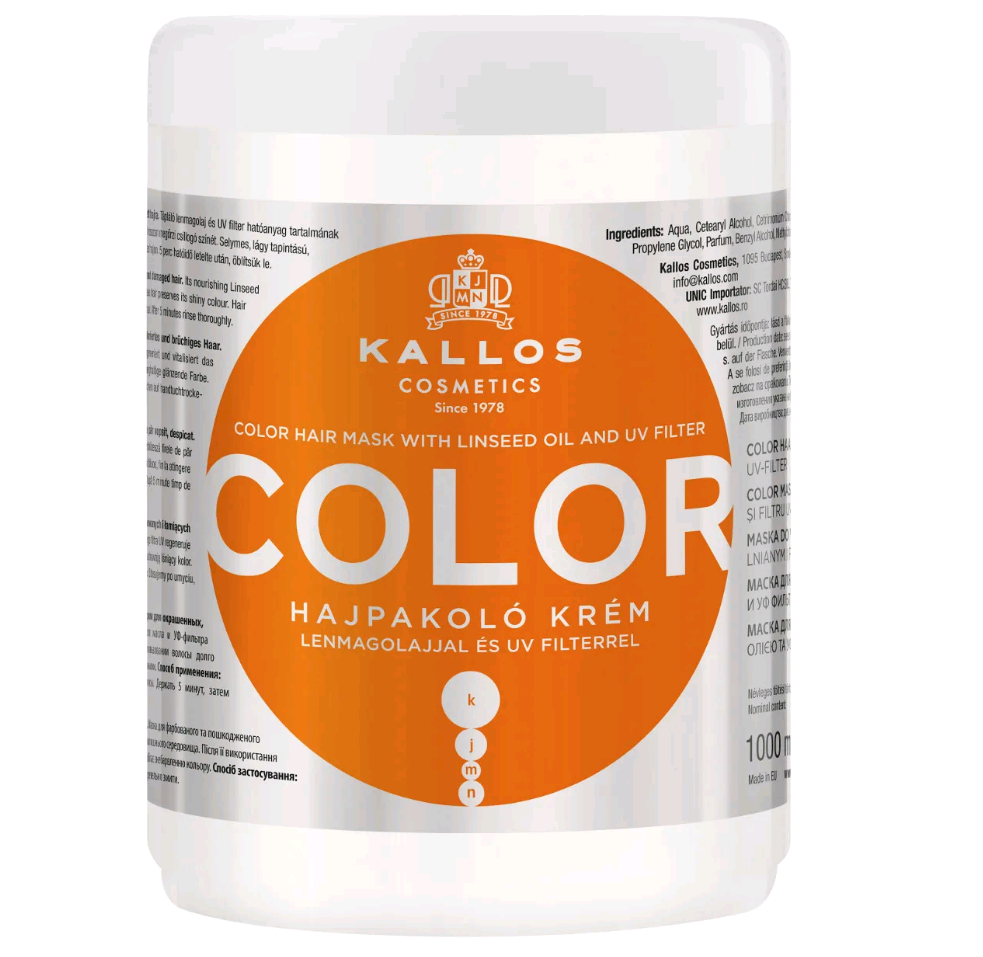 KALLOS COLOR Крем-маска "С льняным маслом" для защиты цвета и блеска окрашенных, поврежденных волос 1000 мл.