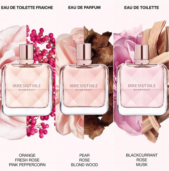 Женская туалетная вода Givenchy Irresistible Eau De Toilette Fraiche была выпущена в 2021 всемирно известным французским брендом Givenchy. Уникальный букет сочетает в себе нежные, слегка сладковатые цветочные ноты с яркими, наполняющими свежестью фруктовыми аккордами. Верхние ноты аромата создают пленительный контраст между энергичным цитрусовым тоном апельсина и островато-пряным акцентом розового перца. Изысканный аромат туалетной воды Givenchy Irresistible Eau De Toilette Fraiche, подчеркнутый букетом сочных, пудрово-розовых тонов, окутывает элегантным чувственным ореолом, а горьковатые акценты будоражат чувства. Центр композиции раскрывается пикантным оттенком турецкой розы и манящей сладостью ириса. Слияние чистой спонтанности и волнующей жизненной силы в сердце эликсира рисует в воображении легендарные розовые поля Турции в рассветных солнечных лучах. Завершают композицию чувственные, землистые, анималистические ноты мускуса с теплым древесным оттенком кедра. Базовые ноты придают аромату глубину, богатство и таинственность, поэтому туалетная вода отлично подойдет для томного романтичного свидания. Несмотря на свою чувственность и соблазнительное послевкусие, аромат остается легким и утонченным, поэтому может использоваться в летне-весенний сезон, а также утреннее и вечернее время.