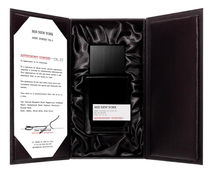 «Все моменты в жизни однажды превращаются в историю!» Эта фраза является девизом американского бренда нишевой парфюмерии MiN NEW YORK, основанной в 1999г. владельцами парфюмерного магазина Чедом Муравчик и Минди Янг. Название бренда в переводе обозначает «Мгновения Нью-Йорка», поэтому красной нитью при создании коллекций проходит главная идея ценить каждый миг, каждое мгновение, из которых состоит жизнь, потому что время является иллюзией в Нью-Йорке. Основатели бренда MiN NEW YORK решили предложить своим клиентам нечто непривычное – сохранить минуты не в книгах или фотоальбоме, а в своих ароматных композициях. Мир уже узнал много оригинальных историй, представленных в двух томах и включающих 16 неординарных ароматов (11 в первом и 5 во втором). В качестве одного из сюжетов коллекции Scent Stories Volume.3 представлена парфюмерная вода MiN NEW YORK Astronomy Domine. Идея этого аромата состоит в том, что каждый человек имеет возможность изменить мир вокруг себя в лучшую сторону путём смены отношения к некоторым моментам и людям. В своём начале аромат открывается живыми цитрусово-пряными аккордами, плавно перетекая в оригинальный коктейль тёплых древесных и цветочных нот в сочетании с синим ирисом, а завершает композицию томный шлейф янтарной амбры. Вся коллекция упакована во флаконы с минималистичным дизайном строгого темного цвета. Откройте роскошь каждого мгновения - насладитесь этим завораживающим ароматом.