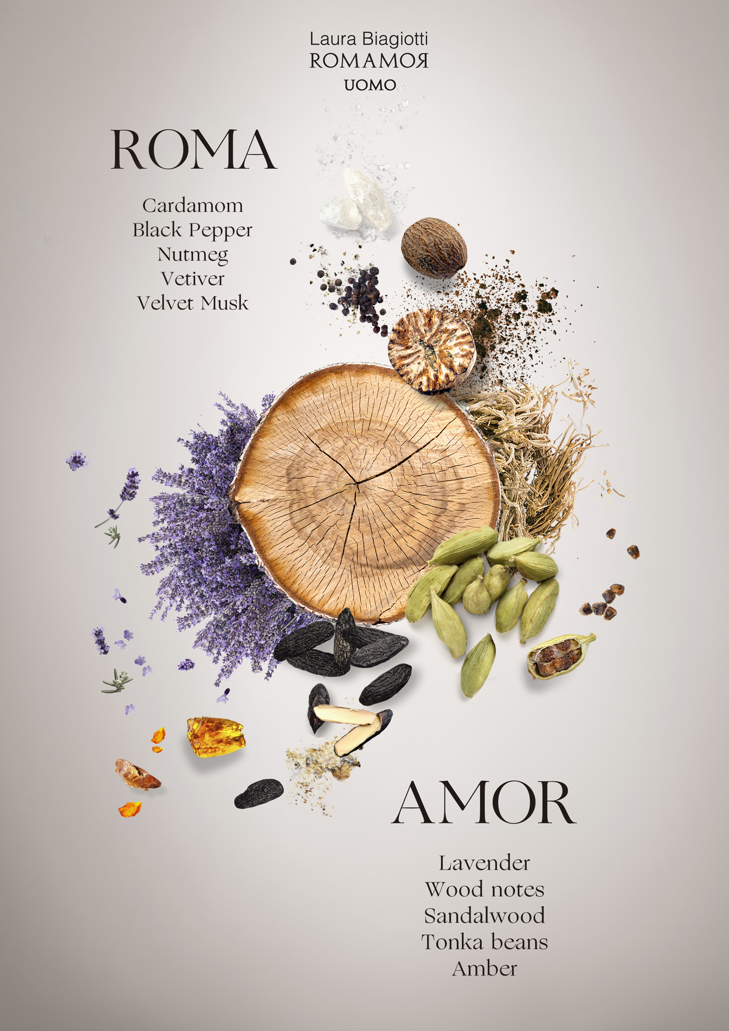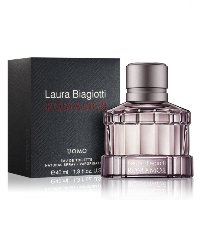 Romamor Uomo — элитная парфюмерная вода с восточно-древесным ароматом для мужчин, представлена в 2018 году итальянским модным брендом Laura Biagiotti. Элегантный изысканный мужественный аромат Romamor Uomo — признание в любви одному из самых старинных прославленных и красивейших городов мира Риму, восхищение и преклонение перед его уникальной великолепной архитектурой, вековой историей и невероятной природой вечного города на «семи холмах». Острым сильным акцентом перца, цитрусовым аккордом кардамона, теплыми сливочными нотами сандалового дерева, древесно-земляного ветивера и нежным душистым цветочным оттенком лаванды мягко струится аромат, сплетаясь в продолжение композиции с восточными сладковато-горькими аккордами эфирного масла бобов тонка, теплого смолистого янтаря, чувственным акцентом мускуса и приятным дымным пряным аккордом мускатного ореха.