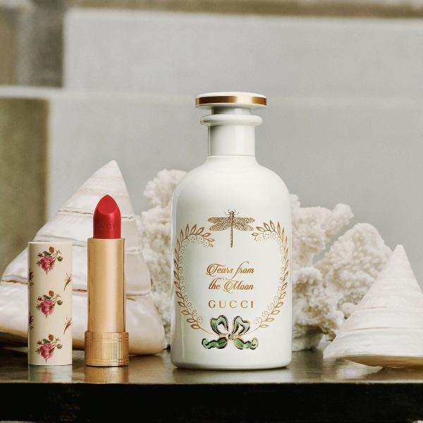 Gucci Tears From The Moon - творение известного парфюмера Альберто Морильяса, входит в премиальную линейку ароматов The Alchemist's Garden. Парфюм несет в себе дух свободы и радости, он легкий и непринужденный, как порхание стрекозы. Ее изображение венчает золотистый венок с зеленым бантом, украшающий белый лаконичный флакон из непрозрачного стекла. Gucci Tears From The Moon - выразительный цветочный аромат, в котором переплелись самые утонченные в своем благоухании белые бутоны. Роскошный белый пион, наполненный воздухом, пышный в своем великолепии, слегка капризный и анималистичный, с сладковатым послевкусием царит в верхних нотах и влюбляет в себя с первых мгновений. Росистый, нежный, с очаровательными нотками свежести и легкости, ландыш оттеняет буйство пиона и беззаветно красуется в сердечных аккордах ароматической пирамиды. Искристый, сладкий и томный, слегка животный, сложный и многогранный стефанотис или мадагаскарский жасмин звучит яркой базовой нотой парфюма, оставляя после себя заметный и обаятельный шлейф, создающий ауру изысканной элегантности. Стоит отметить еще одну особенность аромата Gucci Tears From The Moon - он чудесно звучит на коже. А если смешать его с другими парфюмами линейки The Alchemist's Garden, можно получить совершенно оригинальные ольфакторные творения, подчеркивающие образ, статус и характер. Флакон находится в белой коробке, украшенной золотым орнаментом и мешочке из мягкой муаровой ткани.