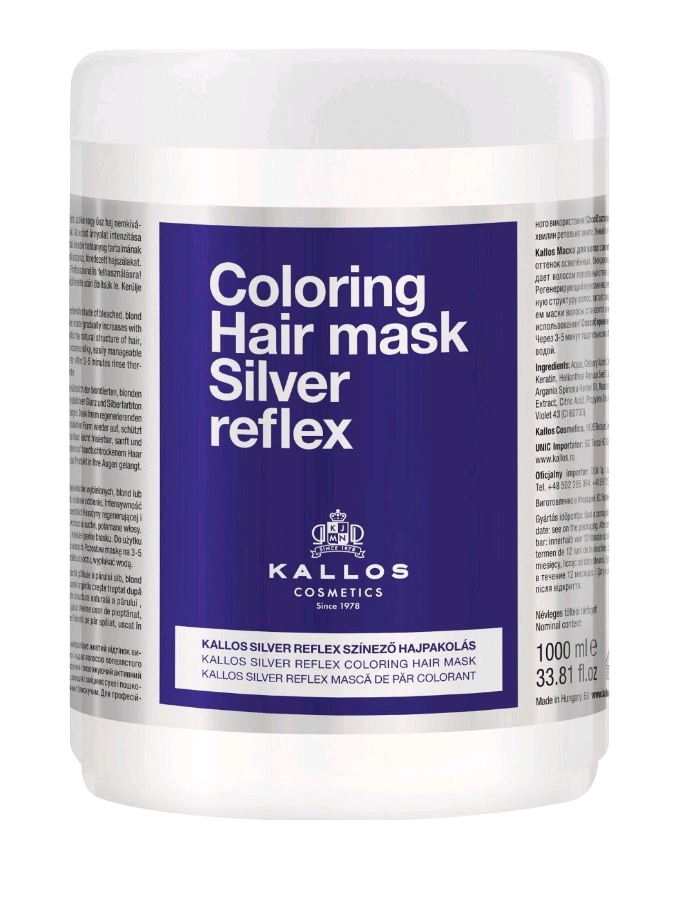 Kallos Маска Silver Reflex для нейтрализации желтизны. Маска контролирует и нейтрализует нежелательный желтый оттенок осветленных, блондированных и седых волос. Восстанавливает естественный блеск и придает волосам пепельный оттенок. Интенсивность серебряного оттенка имеет накопительный эффект. Регенерирующий и увлажняющий активный ингредиент маски - кератин, восстанавливает естественную структуру волос, питает, защищает и укрепляет сухие и поврежденные волосы. С использованием маски волосы становятся шелковистыми, послушными и блестящими.