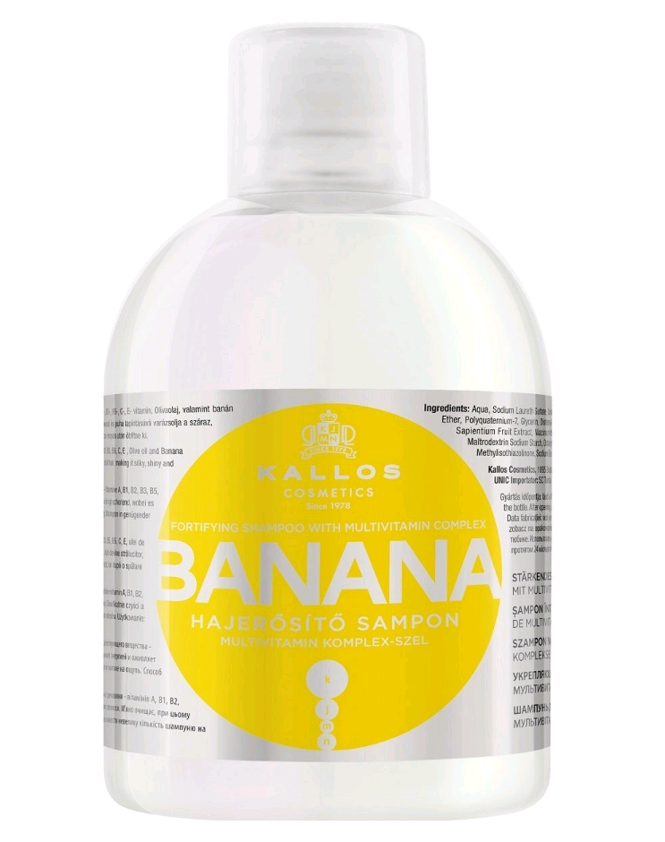 KALLOS BANANA Шампунь "С мультивитаминным комплексом" для поврежденных и сухих волос 1000 мл.