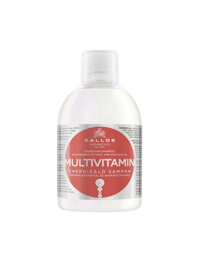 KALLOS MULTIVITAMIN Шампунь "С экстрактом женьшеня и маслом авокадо" для поврежденных и сухих волос 1000 мл.