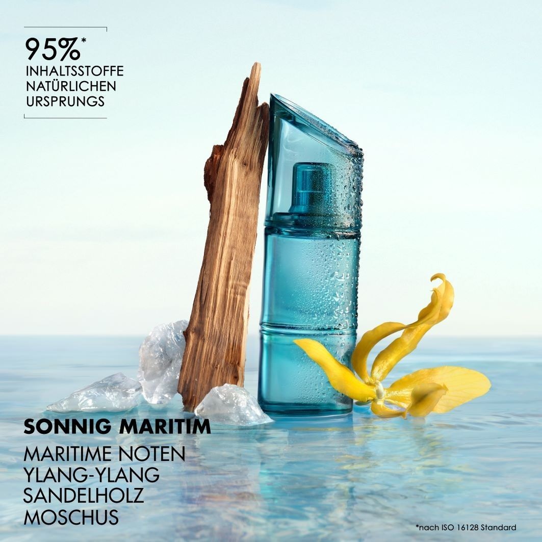 Энергичная свежесть морского аккорда сочетается с ярким иланг-илангом, согретым сливочным сандаловым деревом и комфортным мускусом. Композиция состоит из ингредиентов натурального происхождения. Kenzo стремится внести свой вклад в создание лучшего мира, поэтому изменил дизайн крышки, чтобы сэкономить 34% пластика и включил 15% переработанного стекла в свои флаконы.